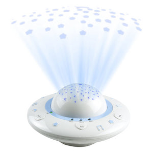Proietta sul soffitto e sulle pareti stelline colorate, mentre le ninne nanne variano in automatico.