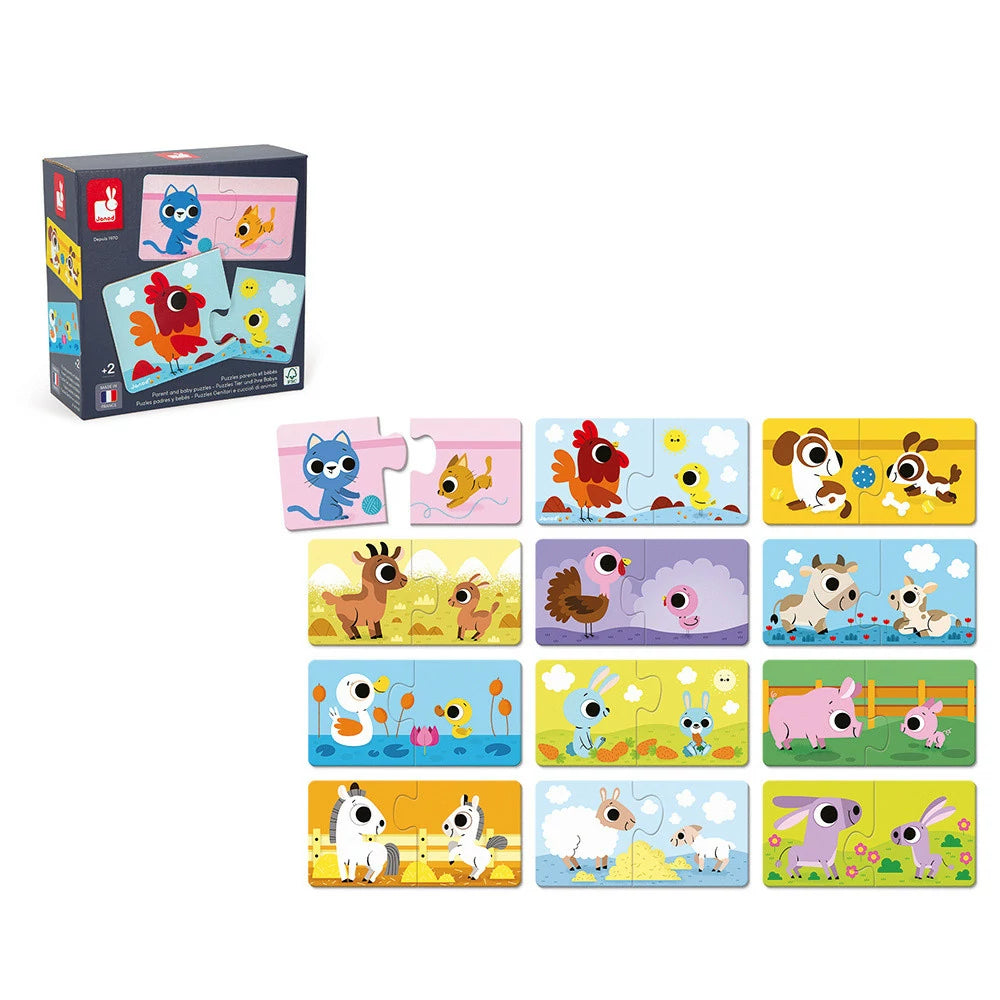 Con questo set di 12 puzzle educativi, i bambini dai 2 anni in su potranno scoprire gli animali della fattoria e i loro cuccioli in modo divertente e coinvolgente.