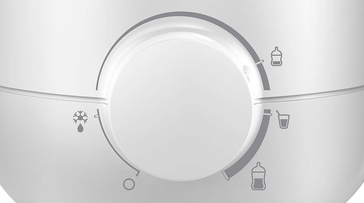 La comoda impostazione di scongelamento delicato per i biberon aiuta a scongelare il latte e le pappe in modo più sicuro rispetto al tradizionale microonde, non rinunciando alla comodità dell'apparecchio elettrico.