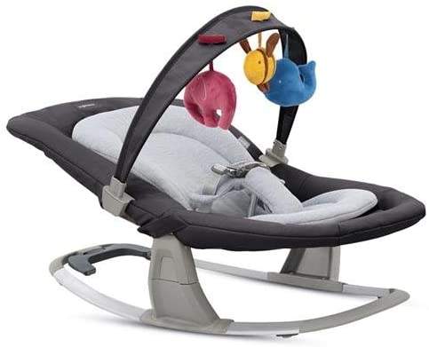 Lounge è la sdraietta musicale firmata Inglesina, per abbracciare il bambino nei suoi primi mesi di vita, donandogli una sensazione di benessere e protezione. La forma curva della sdraietta è progettata per creare un piacevole dondolio armonico, con leva di blocco per garantire la totale sicurezza. La simpatica barra dei giochi agganciabile in diverse posizioni regge tre divertenti animaletti, che grazie ai loro suoni, colori ed elementi tattili stimoleranno il tuo bambino all’apprendimento e alla scoperta del mondo. Il music box suona 3 diverse melodie musicali.