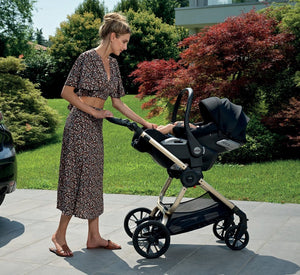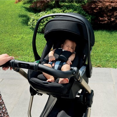- Nella modalità di utilizzo travel system lo schienale si reclina e il poggiagambe si allunga
