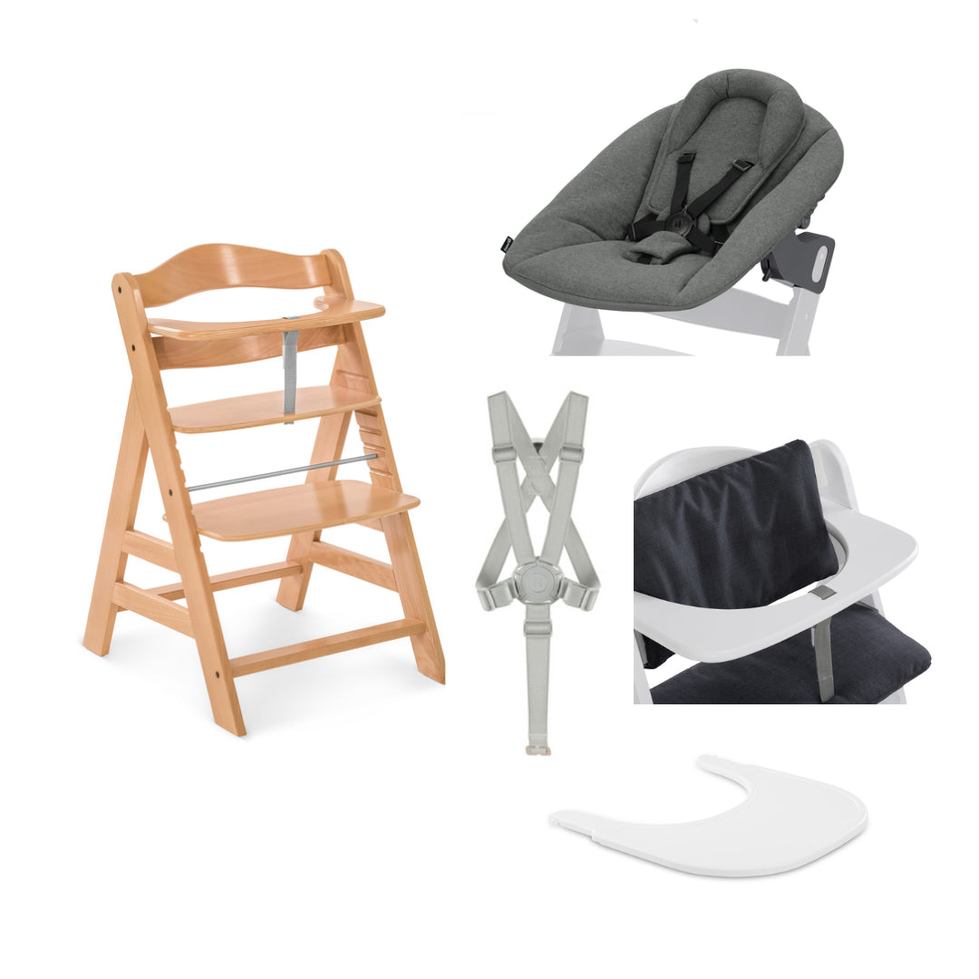 Il seggiolone pappa in legno Alpha+ di Hauck, completo di cinture di sicurezza, vassoio Alpha Click Tray e cuscino Cosy Select, è la scelta ideale per famiglie che desiderano un prodotto sostenibile, sicuro ed evolutivo, che accompagni il bambino dalla nascita fino all'età adulta.