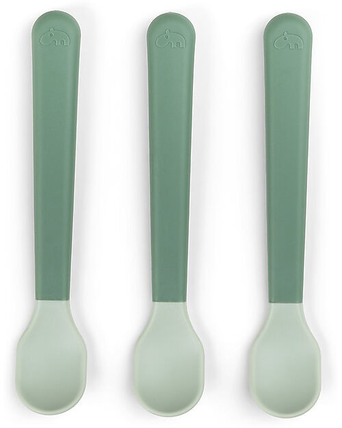 Set di 3 cucchiai in PP alimentare, con manici in silicone antiscivolo, sicuri e lavabili in lavastoviglie.