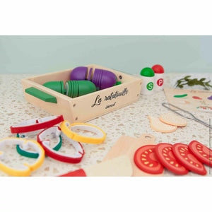 Grazie agli ingredienti separabili, il bambino potrà affettare, mescolare e disporre le verdure come un vero cuoco, imparando a riconoscere gli alimenti e a riprodurre gesti quotidiani in totale sicurezza.