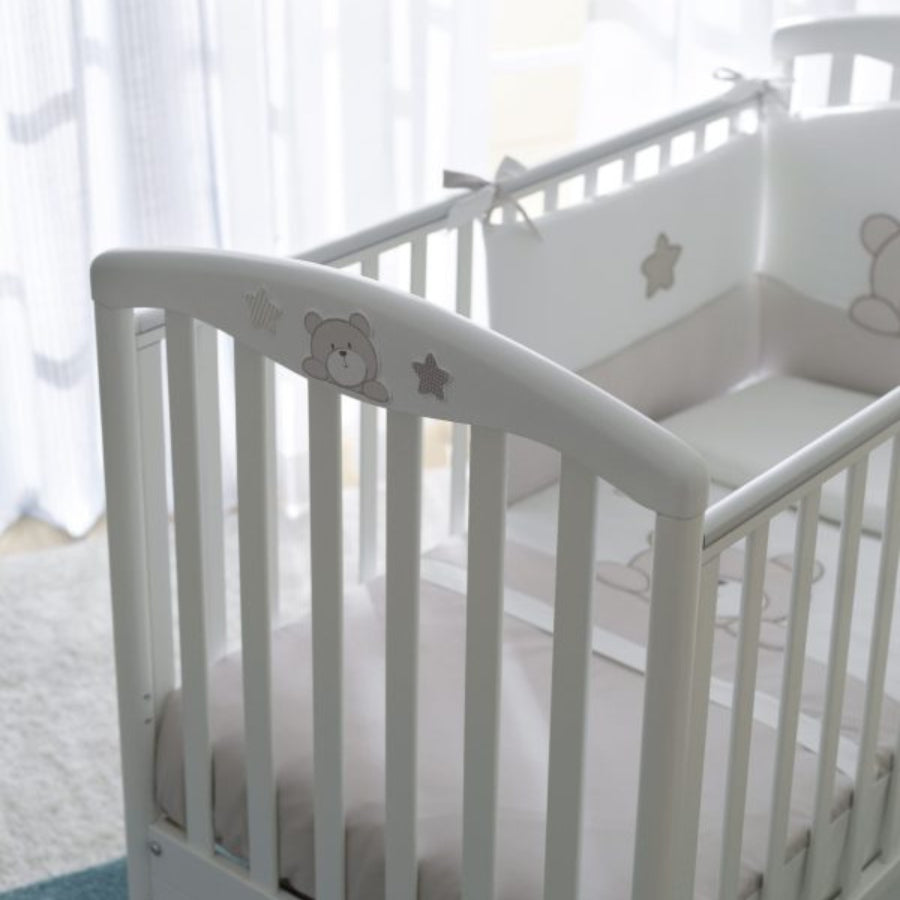 Il piumone e il paracolpi riportano la fantasia della collezione Teo.