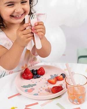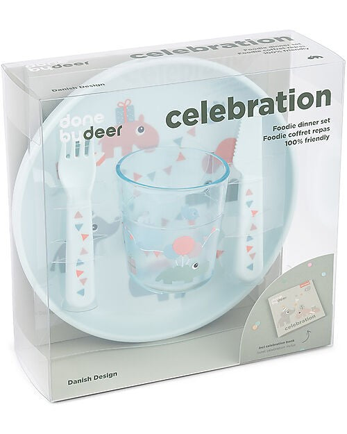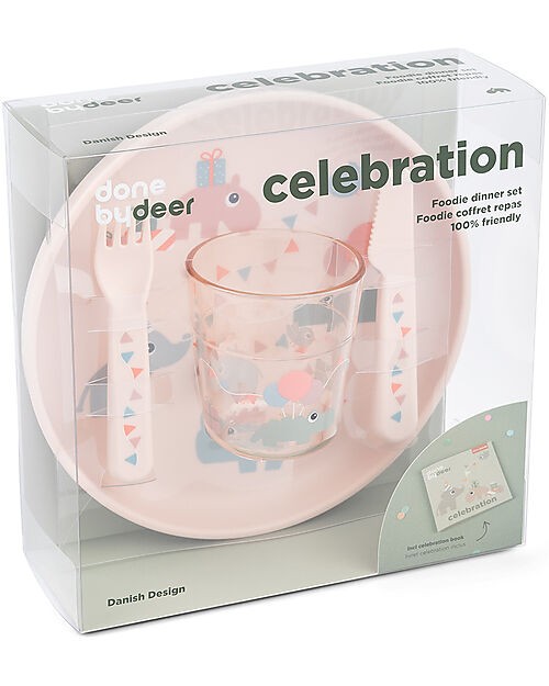 Il Set Pappa Foodie "Celebration" di Done by Deer è l'ideale per rendere i primi pasti del tuo bambino un momento speciale e divertente. Composto da un piatto, un bicchiere, una forchetta e un coltello, questo set è progettato per garantire praticità, sicurezza e comfort durante le prime esperienze a tavola.