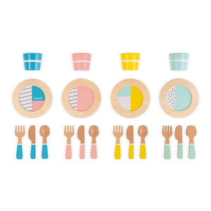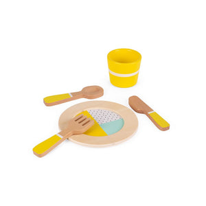 Invita i bambini a immaginare e organizzare pic-nic e pranzi da sogno con il Set Stoviglie in Legno Janod!