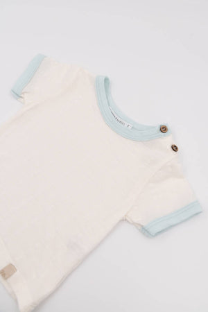 La maglietta bicolore a maniche corte Bamboom per bambino coniuga uno stile distintivo e un comfort naturale, perfetto per l'estate. Realizzata con fibre di bambù ecologiche, questa maglietta offre una morbidezza straordinaria e una traspirabilità ottimale per mantenere i piccoli freschi durante le giornate più calde.