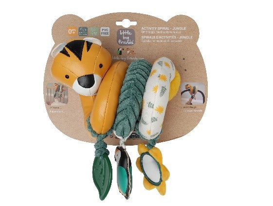 Una spirale morbida e divertente da appendere con diverse consistenze e giocattoli da scoprire.