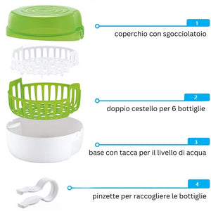 - Sterilizza fino a 6 biberon in 5 minuti