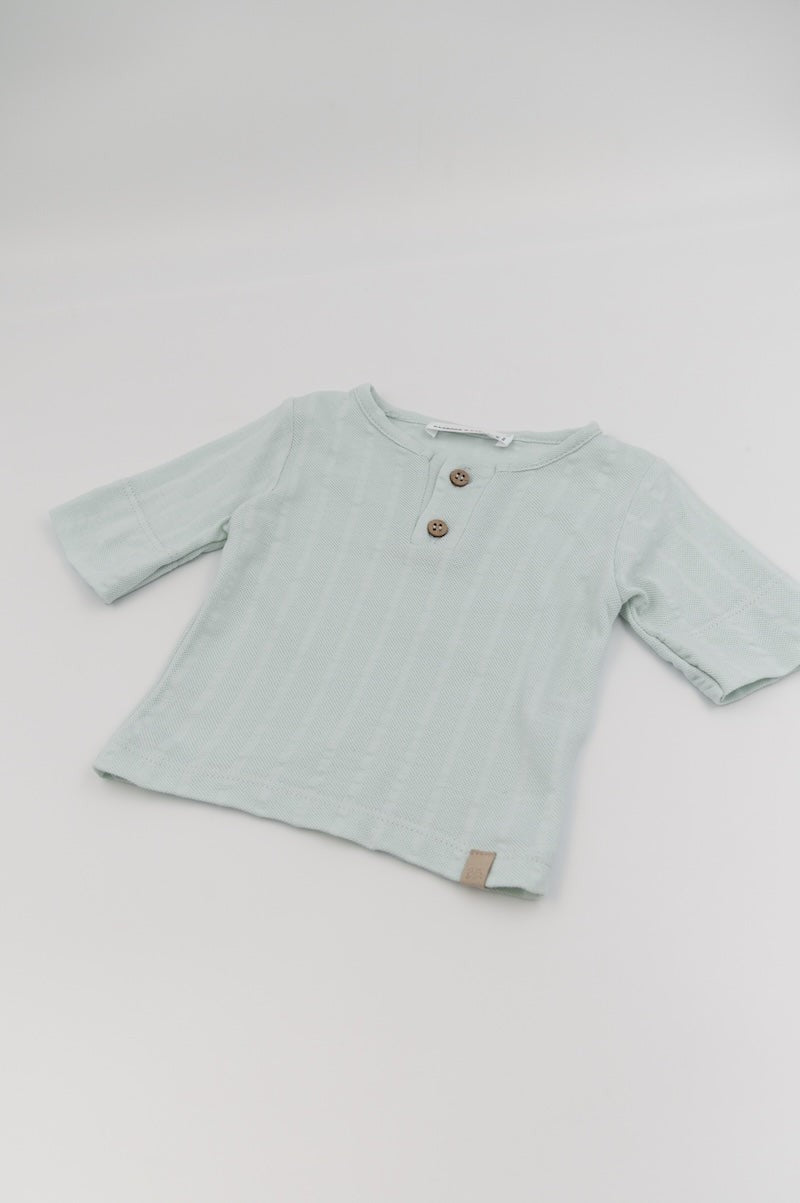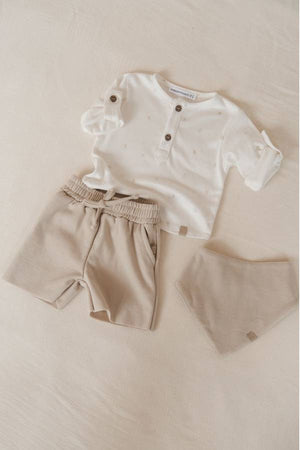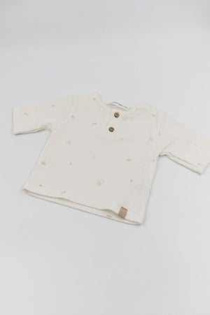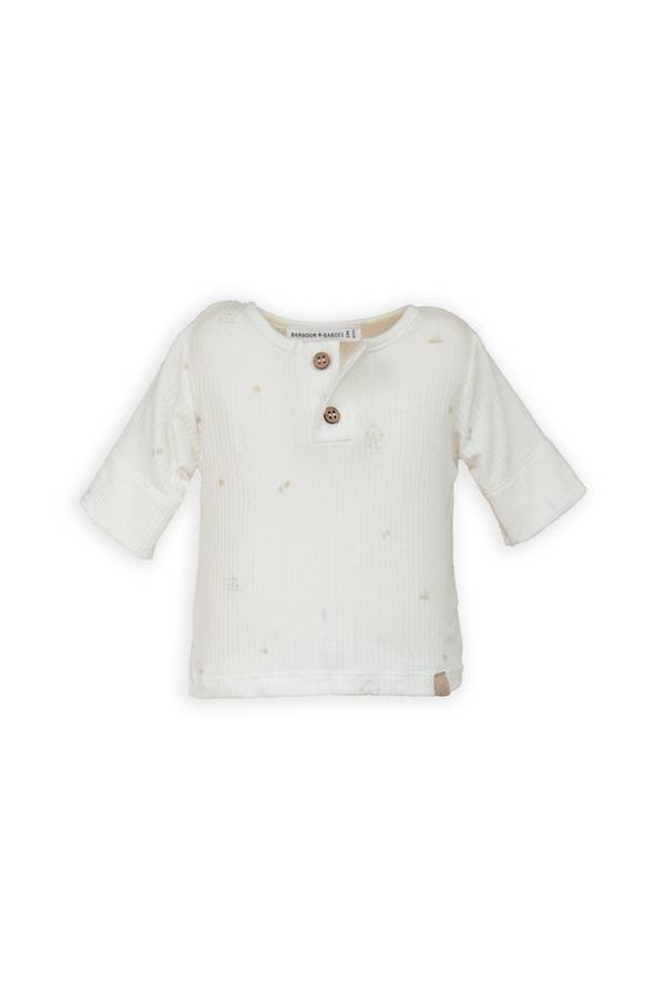 Maglia maniche corte con apertura colletto polo e bottoncini in bambù naturale.