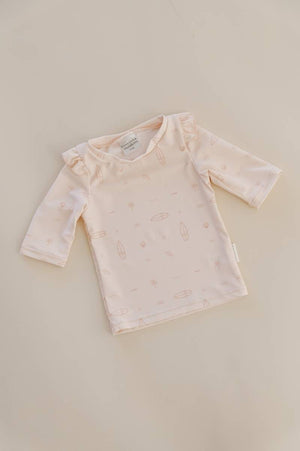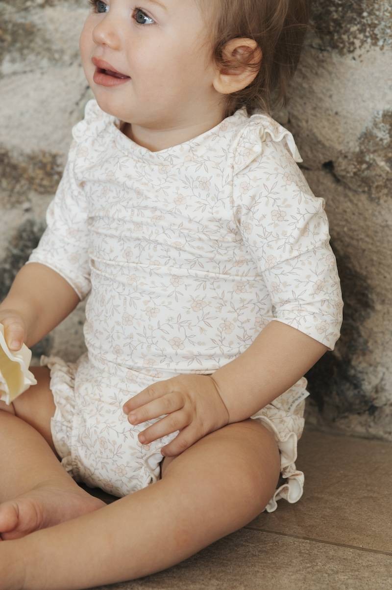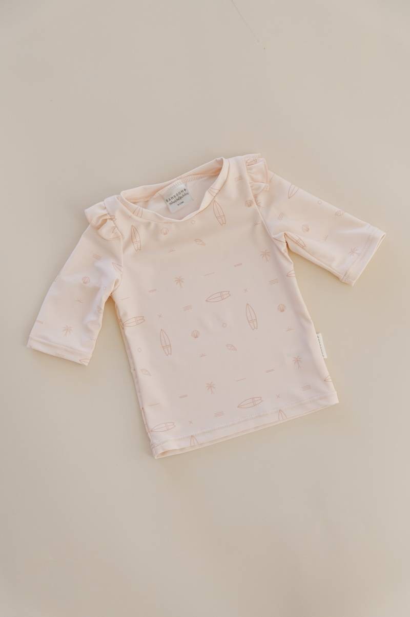 Scopri la swim shirt Bamboom per bambine, caratterizzata dalle maniche a 3/4 e volant, realizzata in poliestere riciclato. Questo capo unisce con eleganza la protezione SPF 50 per difendere la pelle dai raggi solari alla morbidezza e all'eleganza dei tessuti Bamboom. Il suo design giocoso e sostenibile la rende l'ideale per le piccole amanti del mare che desiderano esplorare senza compromettere stile e sicurezza.