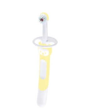 Il MAM Training Brush è pensato per accompagnare i bambini nei primi passi dell'igiene orale, offrendo una pulizia delicata ed efficace. Grazie alla sua impugnatura lunga ed ergonomica, consente ai genitori di aiutare il bambino a lavarsi i denti insieme, favorendo l'apprendimento di movimenti corretti fin dall'inizio.