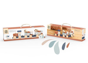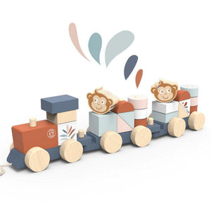 Treno da trainare in legno con blocchi colorati da impilare, dipinto con colori tenui e con due simpatiche scimmiette. Il tuo piccolo si divertirà per ore, impilando elementi sul treno e costruendo case con blocchi colorati. Una volta che tutti sono a bordo, tchu tchu parte per una nuova avventura!