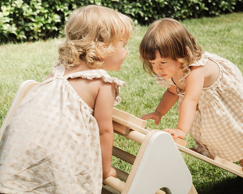 Il triangolo di Pikler richiudibile è un gioco che sviluppa il movimento autonomo, si può utilizzare in casa oppure all’aria aperta, è lo strumento perfetto che permette ai bambini di sperimentare l’ambiente circostante e superare i propri limiti!