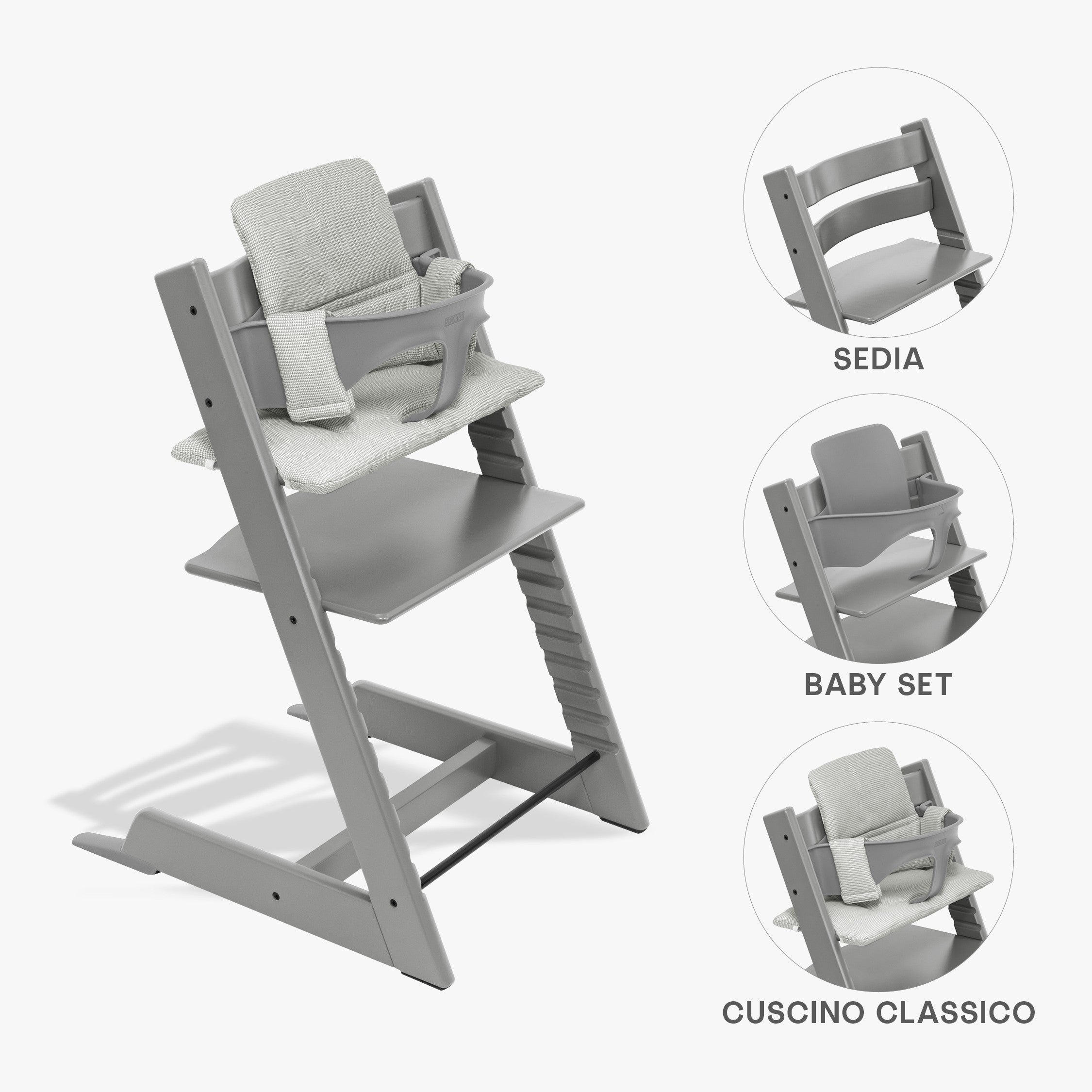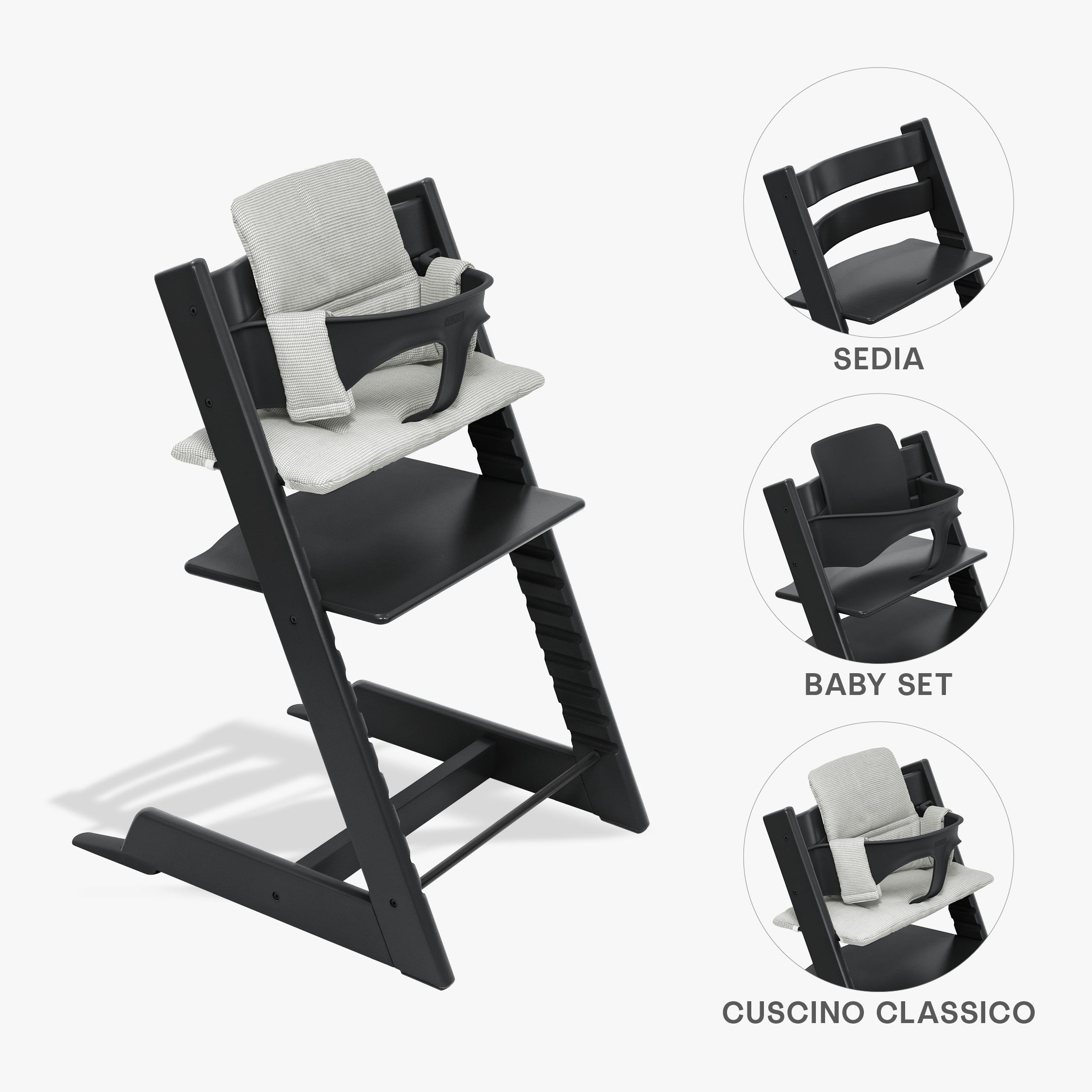 Seggiolone pappa Tripp Trapp Stokke con Baby Set e cuscino.