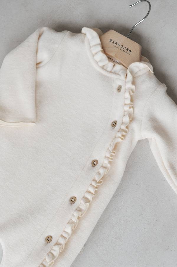 Avvolgi la tua piccola nel calore e nella morbidezza della tutina invernale Bamboom. Realizzata con una combinazione di materiali naturali di alta qualità, questa tutina offre il perfetto equilibrio tra comfort e stile. Il colletto distintivo aggiunge un tocco di raffinata eleganza, ideale per ogni occasione, dalle passeggiate invernali ai momenti speciali. Grazie al tessuto morbido e accogliente, composto al 68% da bambù naturale, 27% cotone e 5% spandex, la tua bimba resterà calda e coccolata per tutto l'inverno.