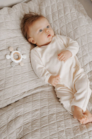 Scopri il lusso quotidiano con la tutina in color avorio di Bamboom, un capo che combina eleganza e comfort in modo impeccabile!