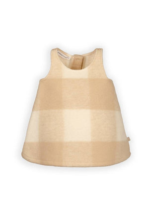 Il Vestito Salopette è un capo elegante e funzionale, pensato per le bambine più piccole. Realizzato in lana cotta, un materiale naturale che offre calore senza appesantire, questo vestito garantisce comfort e libertà di movimento. Il design salopette con bretelle regolabili e la chiusura posteriore facilitano l'indossamento, mentre il taglio svasato aggiunge un tocco di stile.