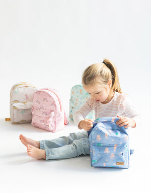 Zainetto impermeabile ideale per l'asilo con spallacci regolabili e imbottiti e pettorina con chiusura a clip sul petto.